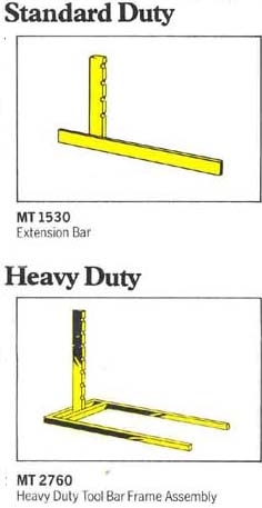 ToolbarsThere is some confusion about the need for and use of toolbars with accessories for Merry Tillers. First a little history, long before Merry Tillers were made in the UK, a firm called Jalo wheeled hoes made, well, a wheeled hoe. The idea was the wheel rolled along the surface and controlled the depth that the hoe worked at. Various tools were available which bolted to the hoe frame. Wolseley had the idea of using these tools on the back of a Merry Tiller, and produced a "standard toolbar" to allow the Jalo tools to be used. They also sold tools and a toolbar from the US made Merry Tillers, but by about 1961 they had dropped the US tools, and started to sell tools and a toolbar made from 5/8" square bar, probably made by another UK accessories maker, this was called the "heavy duty toolbar." Both tools made by Jalo and those for the heavy duty toolbar were marketed through Wolseley/Atco dealers right up to the end of production, but the tools for one are incompatible with the other's toolbar. Furrowers were made for both toolbars and, though the blade is identical, the ones for the standard toolbar have either a 7/8" round mounting post or a 3/4" square section post but the furrowers for heavy duty toolbars have a 5/8" mounting post to match the rest of the frame. Both toolbars require crossbars and clamps to fit the accessories. Again, those made for one won't fit the other. Some accessories with the 3/4" or round mounting post can be used directly in the hitch casting, and a shortened version of the standard toolbar was made for the front of the Merry Tiller to mount the bulldozer blade and yard scraper attachments. Plastic belt guard Titans have a bracket at the front as standard, so the hitch casting can be moved from the rear to the front of the chassis. |
