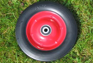 Ten inch diameter transport wheels, replacements for the plastic centered wheels fitted from about 1970 to 73, but the same size as the steel ones fitted from 1961 to 70. Many post 73 machines used 9 inch wheels but these 10 inch ones can be used, as a pair, instead. They are available again but the price from my supplier has above doubled since lockdown, so I have had to double prices Not suitable for single wheel models Wizard/Cadet/B66. |
